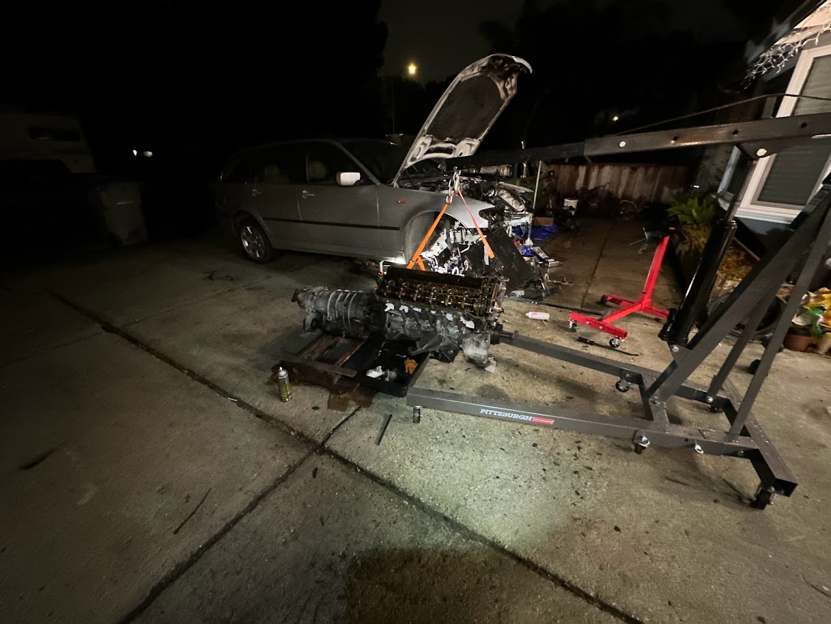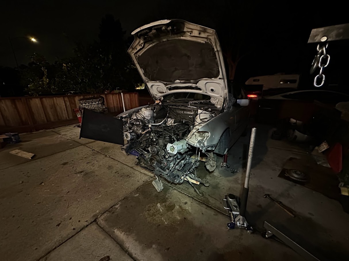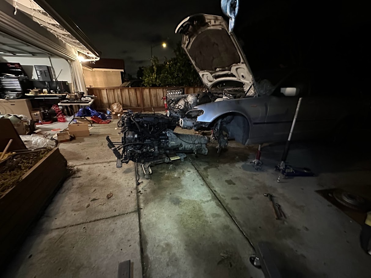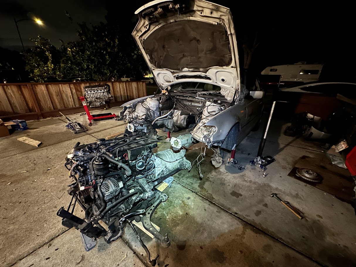 The engine replacement was the main reason I bought the E46 in the first place. The car had lost its original engine to oil starvation, but the rest of it was clean enough that it still felt worth saving. That made the plan pretty straightforward in theory: start with a junkyard engine, reseal everything I could get to while it was out, replace the full cooling system, and try to build what might qualify as the least leaky BMW in the world.