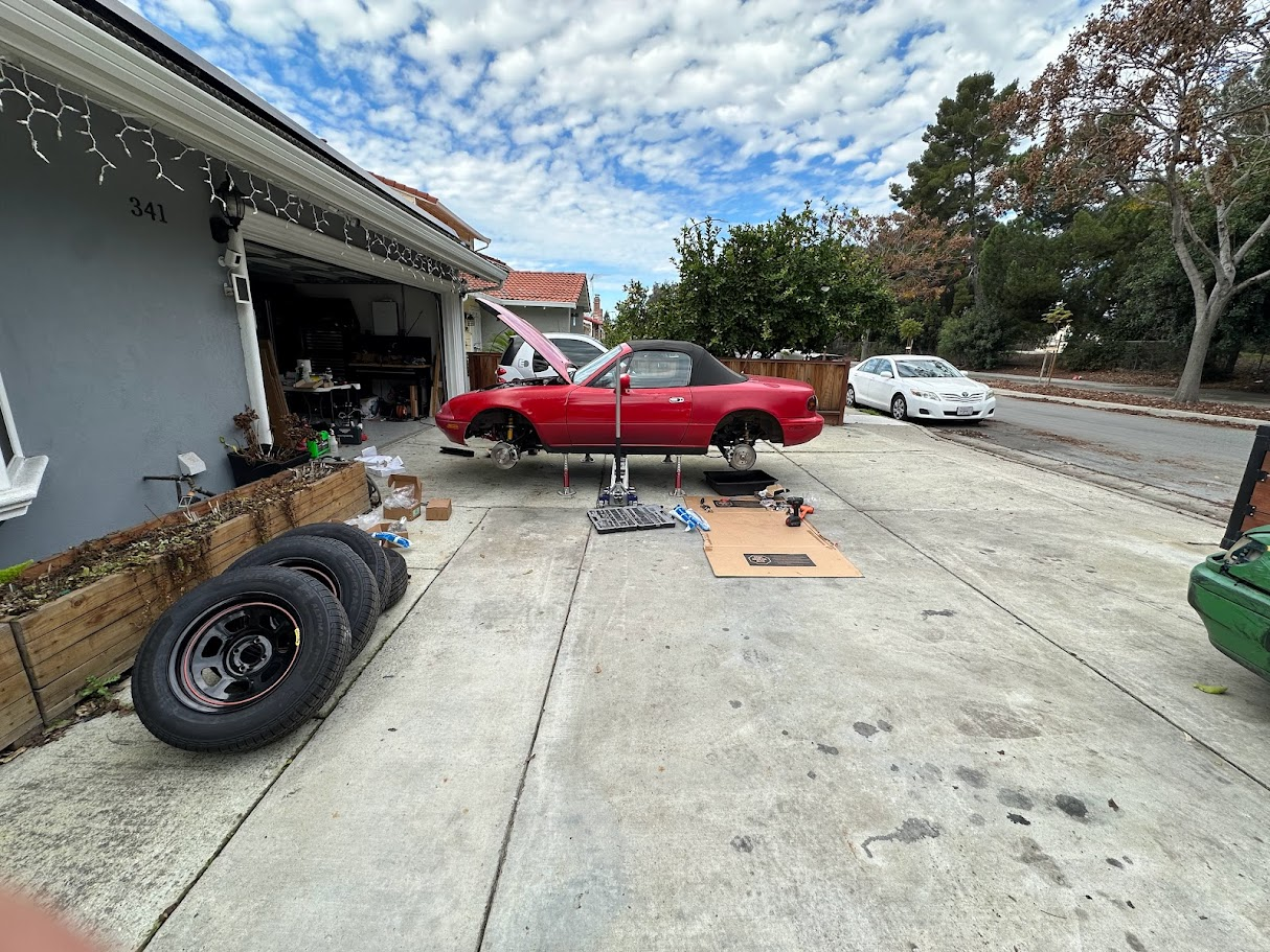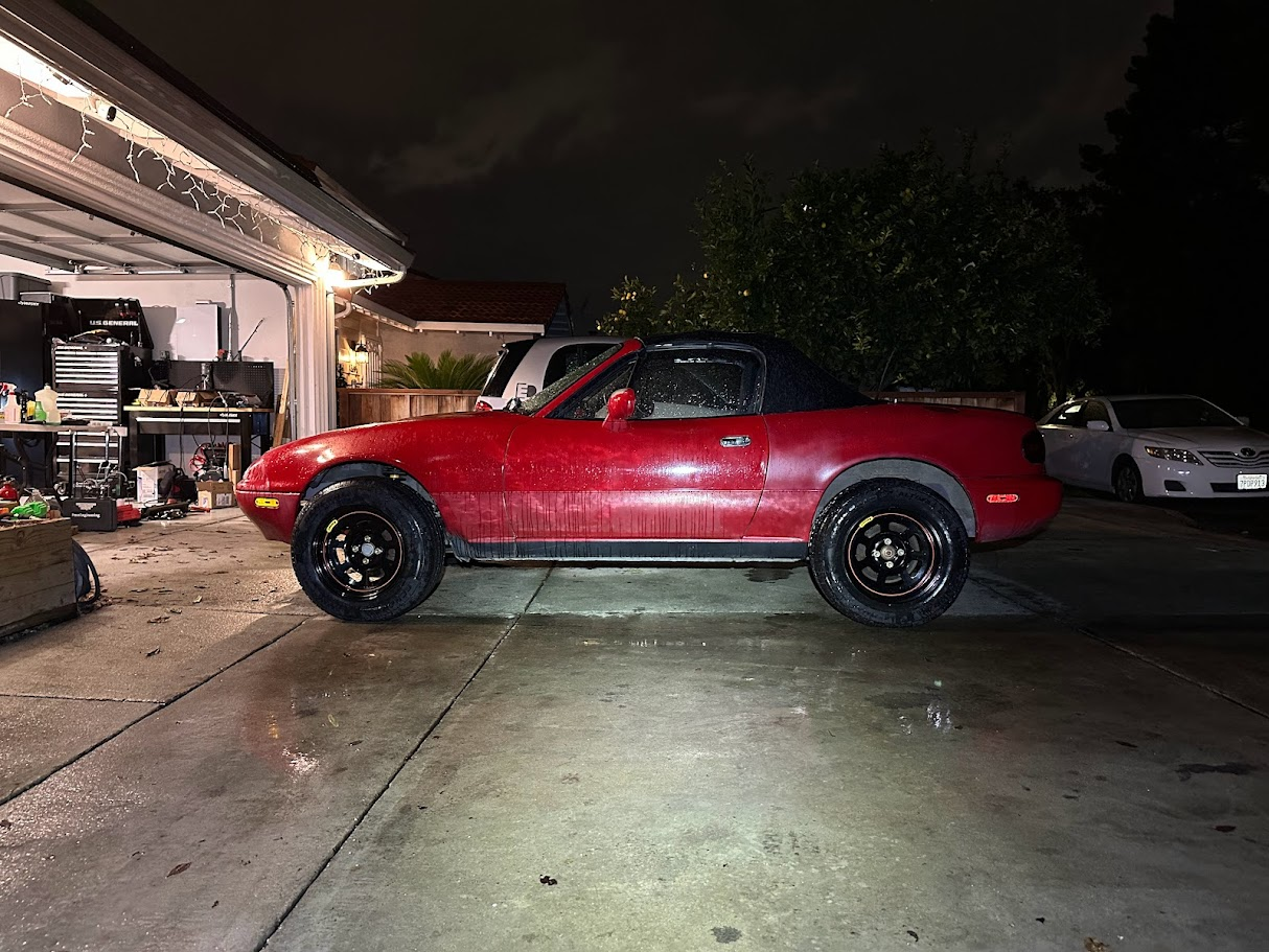 The Miata showed up during COVID as a very bone-stock NA in exactly the kind of condition I like most: rough enough to be cheap, good enough to be worth saving, and just broken enough to require some effort before I could actually enjoy it. The first job was getting it through smog after chasing down a badly leaking injector, a dirty O2 sensor, and a dead catalytic converter. Once it was legal, the next problem was that it scraped constantly on my driveway, which made building another lowered Miata seem even less interesting than usual.