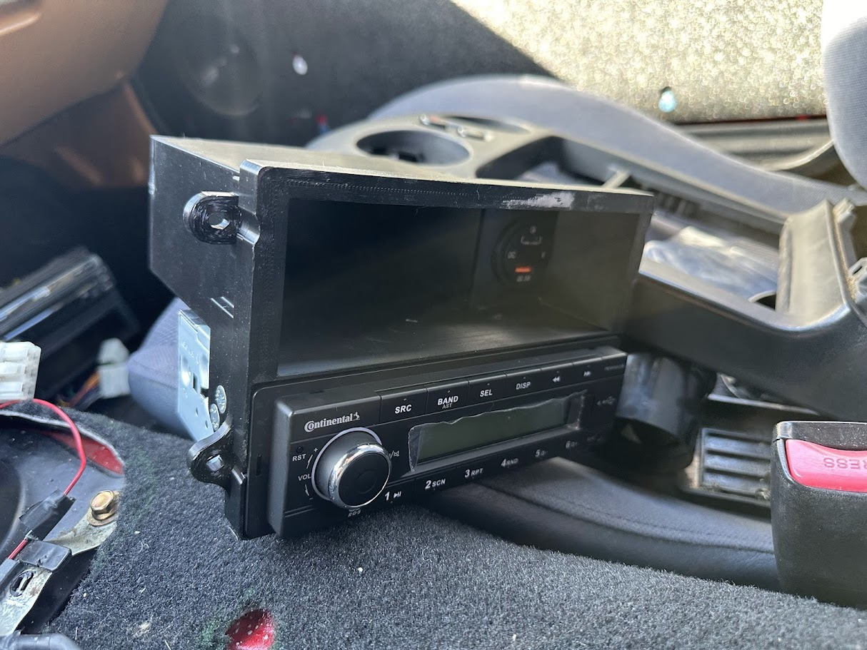 The radio project was mostly about fixing two problems at once: getting a head unit that still looked period-correct in the dash, and building a shelf layout that was actually useful. The head unit itself is just a Continental unit chosen because it suits the car visually while still giving me the modern conveniences I actually wanted, namely USB and Bluetooth. That part was easy. The annoying part was that every available mounting adapter looked a little wrong, and most shelf options were too shallow to be truly useful.