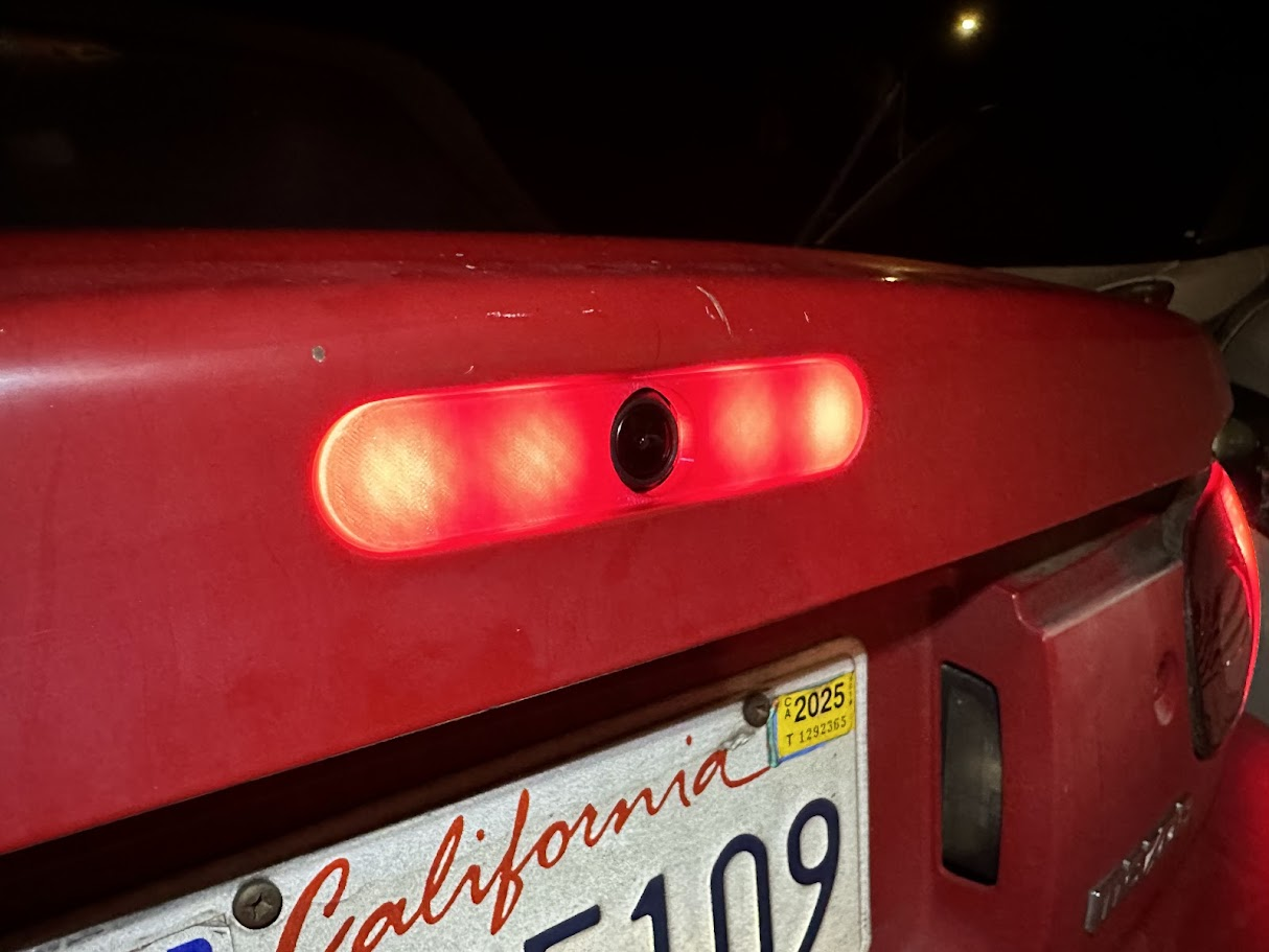 In practice, it solved more problems than I originally expected. It gives a much clearer rear view with the top up, it no longer blinds me at night because the camera can control exposure properly, and it also doubles as a dash cam. That turned out to be extremely useful in at least one close-call incident where another car very nearly collected the Miata, and the footage clearly showed it approaching in the background. Like the radio mount, it is one of those projects that ended up making the car feel much more usable without giving up the weird charm of an old Miata.