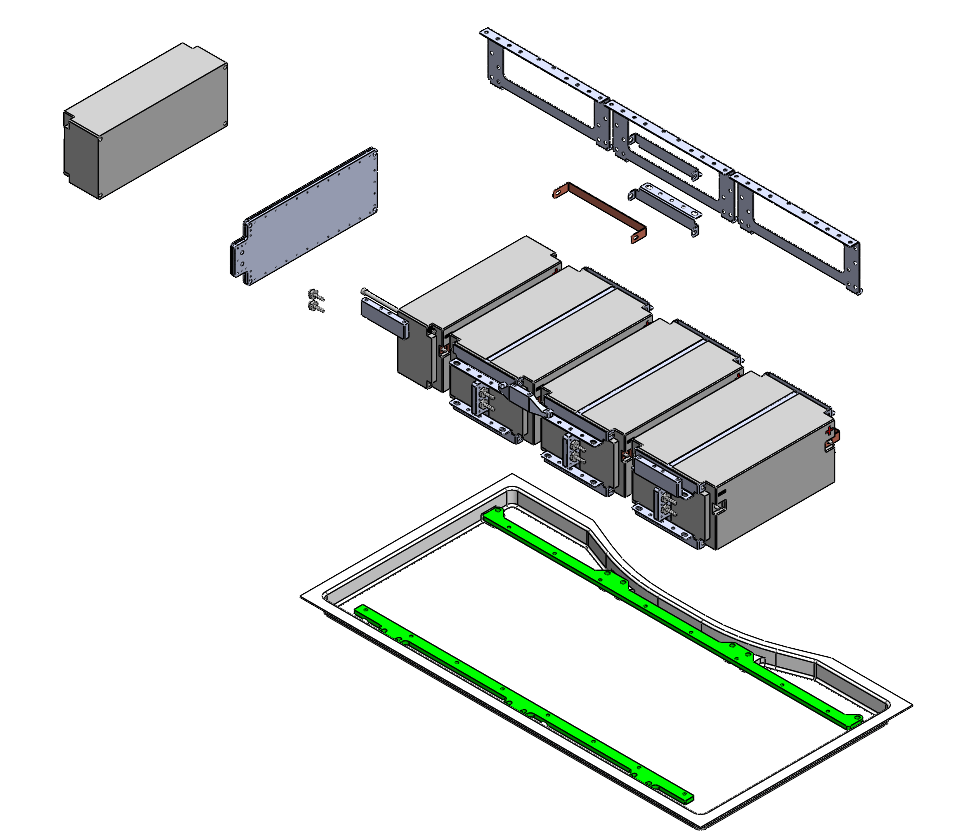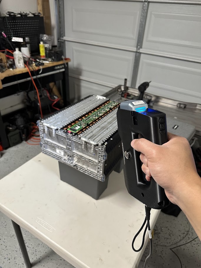 The replacement pack ended up using eight Samsung 12s modules, chosen mainly because they were readily available and landed close to the original pack capacity target of about 17 kWh. To match the Smart’s original 93-series cell count, one module had to be reconfigured to remove three cells. Before designing around the new hardware, I 3D scanned the original battery enclosure into CAD so I could work within the stock package space instead of guessing. That let me lay out the modules, cooling system, and mounting strategy in a way that still respected the original enclosure and service points.