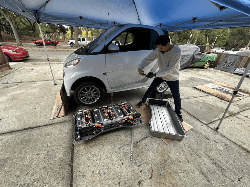 The Smart project started the way a lot of good bad ideas do: I found a very clean electric Smart at Pick-n-Pull with only about 20,000 miles on it and a completely dead battery pack. The car was a perfect little compliance-car oddball with low range, slow charging, and all the limitations people like to make fun of, which naturally made it more appealing rather than less. The real problem was that the original BMS had one especially nasty flaw: if the 12-volt battery died, the high-voltage pack could intentionally drain itself into a so-called junkyard mode, which helped make these cars effectively disposable once anything went wrong.