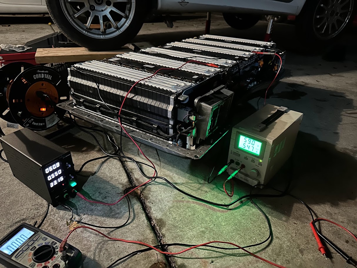 I dropped the pack, opened it up, and trickle charged the original modules one at a time with a bench supply. That did bring the cells back to life enough to prove the car out, but only in a very degraded state. Under any meaningful load the pack fell on its face, and it was obvious that the original battery was not going to be usable for long. The larger problem was that replacement packs for these cars were effectively nonexistent. Owners were getting quoted absurd numbers to replace them, even though there was basically no real inventory, no reman line, and very little meaningful support left for the platform. At that point the only sensible option was to either swap the whole drivetrain for something else or build a new battery pack. The whole point of the project was to keep the car electric, so the new-pack route won.